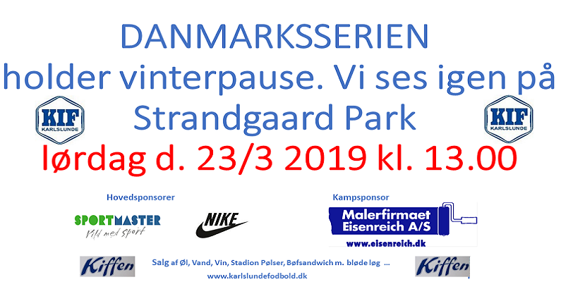 Nu er det så blevet tid til vinter- og julepause, så vi må venter til foråret med at komme på Strandgaard Park til mere underholdning fra vores bedste fodboldhold. Vi siger tak for støtten gennem efteråret 2018 og så glæder vi os til vi ses igen til første kamp i 2019, som foregår på: