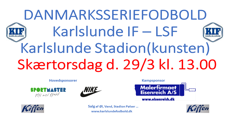 Sæsonen er skudt i gang. Det blev den i lørdags, hvor KIF var en tur i Herlev. Herlev ligger nummer 2 i rækken og levede helt op til rollen som favorit. De sendte Karlslunde hjem med et nederlag på 5-0. Nu gælder det så første hjemmekamp i foråret. Kampen spille nu på: