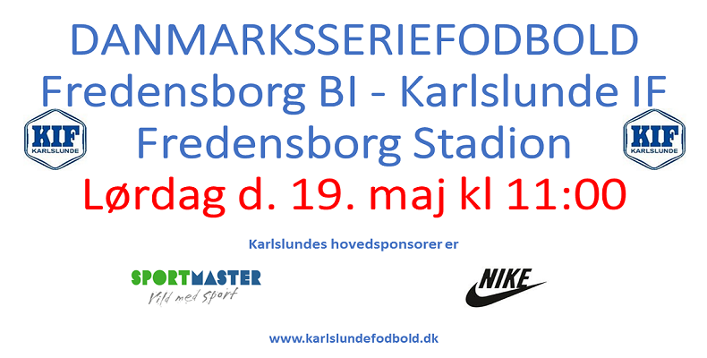 Med kun 4 point efter de første 8 kampe i foråret er det tid til at tage alle 3 point med hjem når det på lørdag går løs i Fredensborg. KIF holder stadig sidstepladsen i rækken og holdet har en tendens til at først at komme op på niveau når den mangler 20-25 minutter af kampene. Det ses også af de resultater der opnås. Både 2-2 ude mod Stenløse og weekendens 1-1 hjemme mod Kastrup er resultater, som skabes i de sidste minutter. Nu gælder det så rækkens nummer 8 fra Fredensborg og en sejr, som nærmest er en nødvendighed, bringer holdet et godt stykke nærmere en overlevelse i Danmarksserien. Det betyder, at holdet skal være mere klar ved kampstart, så de ikke igen skal hænge efter og redde det hele i kampens afslutning. Holdet kan, som altid, bruge al den støtte der kan mobiliseres, så prøv noget nyt - tag til en udekamp og se drengene fra Karlslunde når de med garanti vil kæmpe til sidste fløjt for at hente de vigtige 3 point. Det hele foregår på: