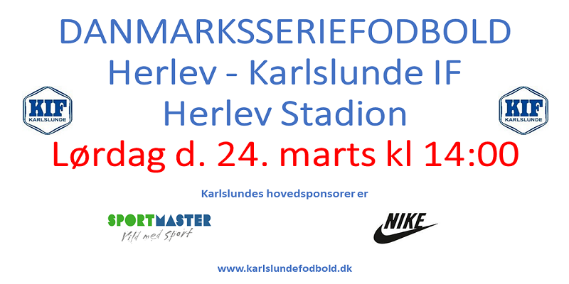 Så starter sæsonen og med den, kampen for overlevelse i Danmarksserien. Det sker allerede nu på lørdag d. 24. marts kl 14, hvor holdet skal en tur til Herlev. Herlev ligger nummer 2 i rækken og ved det seneste opgør blev det 2-0 til Karlslunde hjemme på stadion. Holdet kan bruge al den opbakning der kan mobiliseres, så tag endelig turen til Herlev Stadion, Tvedvangen 200, 2730 Herlev