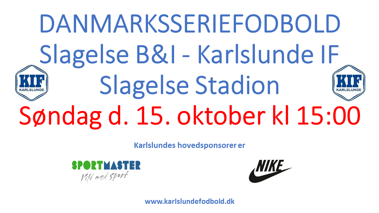 Så skal vores Danmarksseriehold en tur til Slagelse og se om de kan hente point med hjem. Slagelse fører rækken og i den omvendte kamp på Karlslunde Stadion vandt Slagelse knebent med 1-0. I denne weekend, 7. oktober, spillede mødte vi hjemme mod Stenløse og det blev til et enkelt point. Karlsunde kom fint fra start og kom foran med ca 10 minutter igen af første halvleg. Desværre syntes dommeren der skulle være straffespark til Stenløse med ca 3 minutter igen af første halvleg og det blev udnyttet til stillingen 1-1, som holdt kampen ud. Karlslunde ligger stadig nummer 8 i rækken, så 3 point i Slagelse vil lune. Tag en tur til Slagelse, mød vognmanden og se så en god fodboldkamp på
